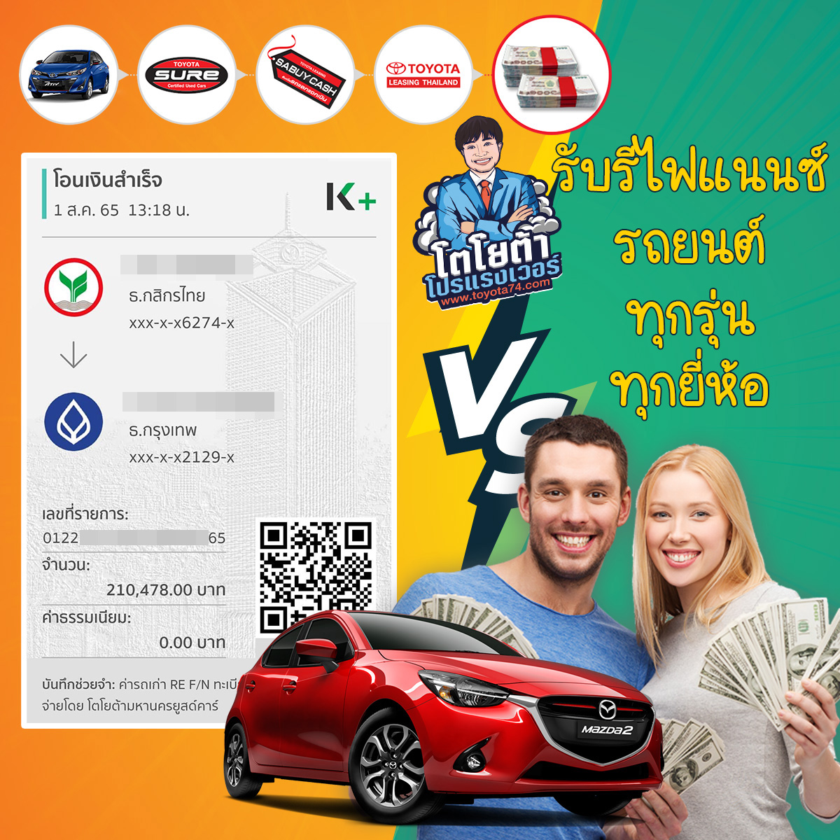โตโยต้ารีไฟแนนซ์ จัดสินเชื่อรถบ้าน คลิกเลย 📲📲