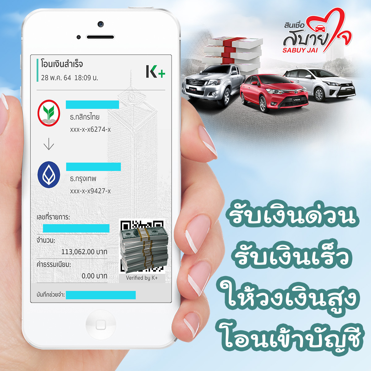 การันตีจากลูกค้า รับเงินก้อน โอนเข้าบัญชี